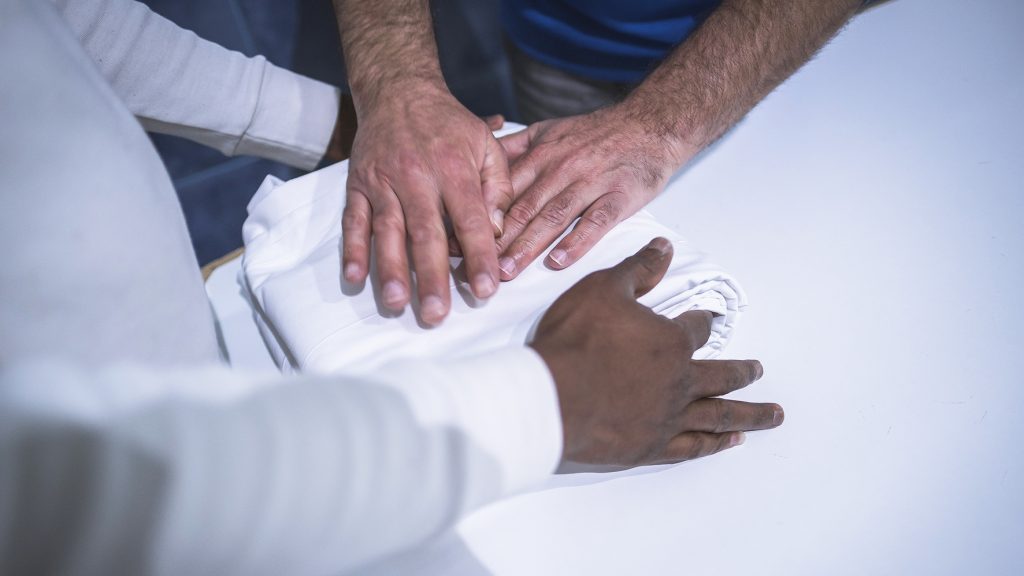 El equipo de la Lavandería cuenta con el apoyo de algunas personas en el marco del programa ACOL, una subvención del Servicio de Ocupación de Cataluña (SOC) y la Secretaría de Igualdad, Migraciones y Ciudadanía, que tiene como finalidad la contratación y formación de personas migradas en situación irregular.